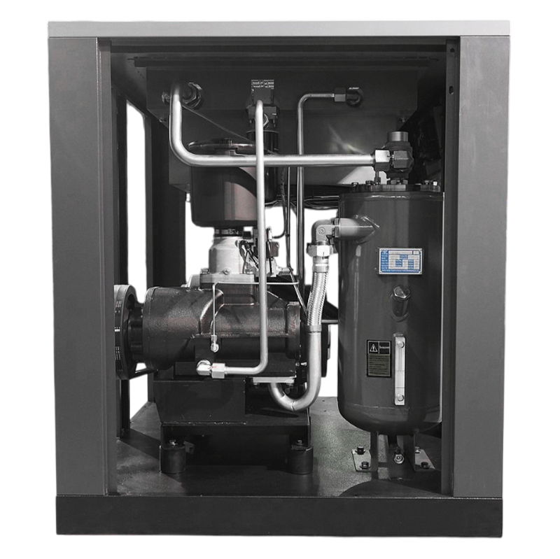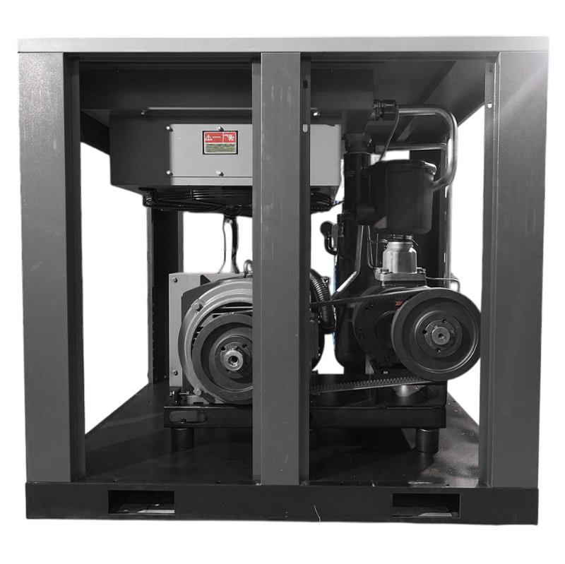 Клиновые ремни передают до 97% КПД с электродвигателя на винтовой блок, а также способствуют исключению вибрационных нагрузок во время пуска компрессора. Конструкция максимально проста, у неё самый высокий показатель удобства обслуживания приводных механизмов. Общая масса компрессора будет выше, чем на прямом приводе, что способствует устойчивости конструкции к вибрации и раскачиванию.